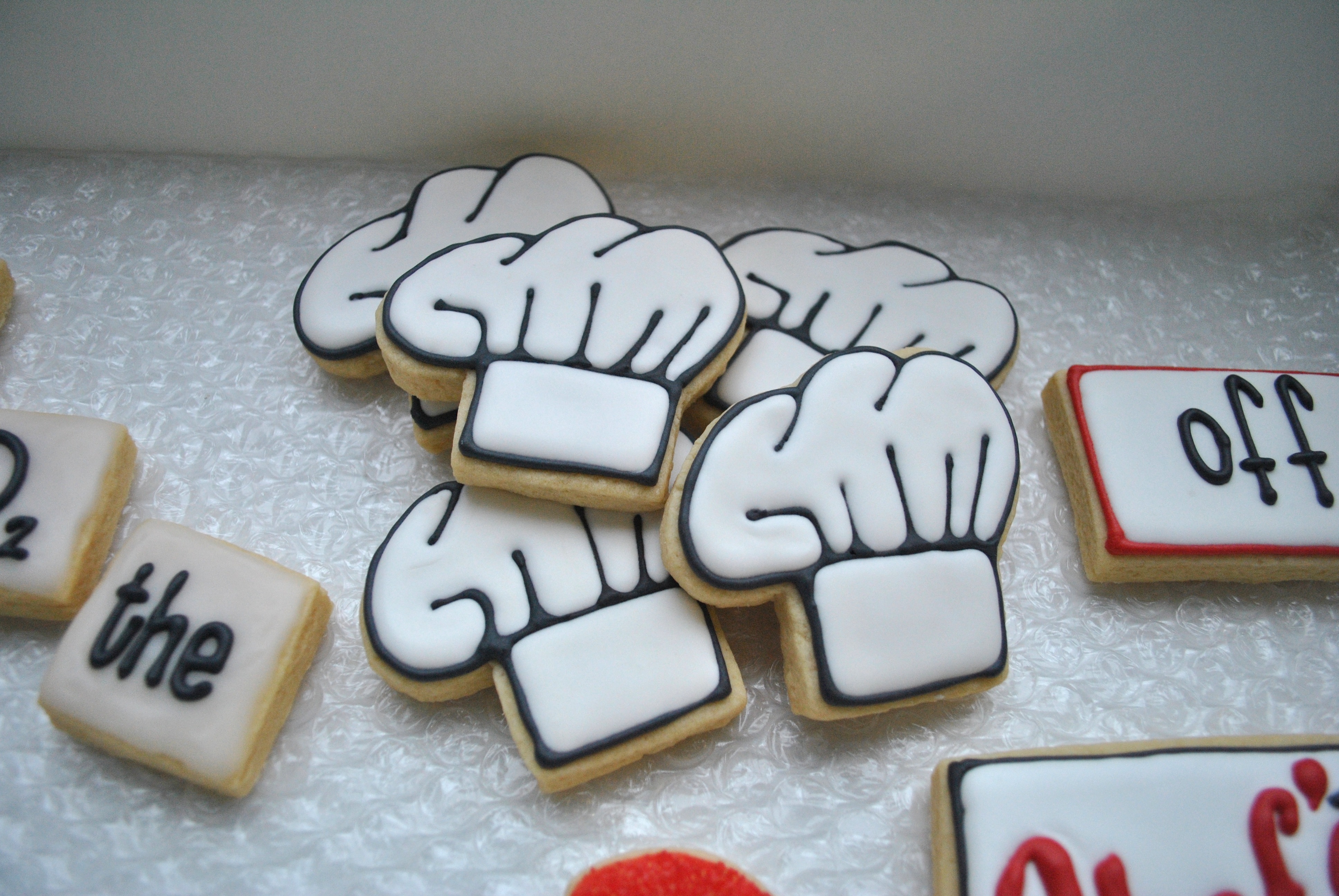 The bottom cookie took 8 ounces or so of royal icing to completely coat (and I had to momentarily stop about half way through, thus the lines in the dark blue. darn. It’s all about the icing consistency- should have made it a little thinner.) While this was still wet, I put the top cookies in place and dotted the stars.