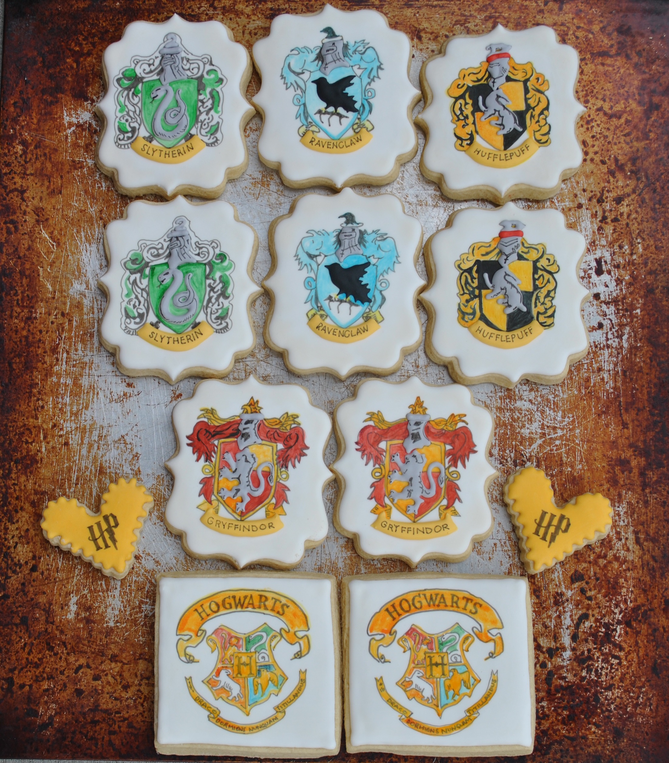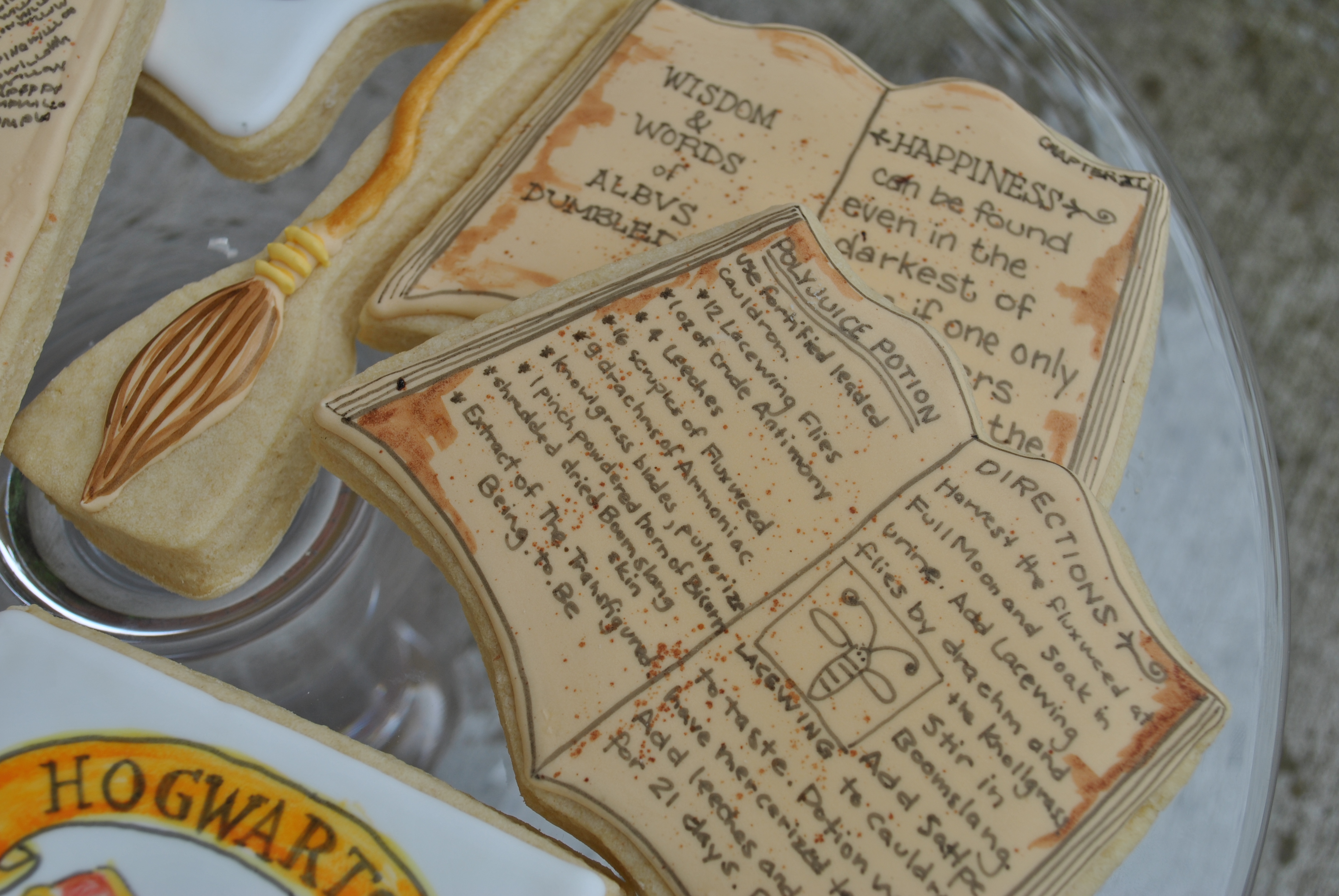 Every once and a while, cookies turn out EXACTLY like I imagined.  That is the case for the cookies in this first picture.  I wanted just the right amount of detail and aging to go along with the magic, mystery, and mischief that is Harry Potter.
