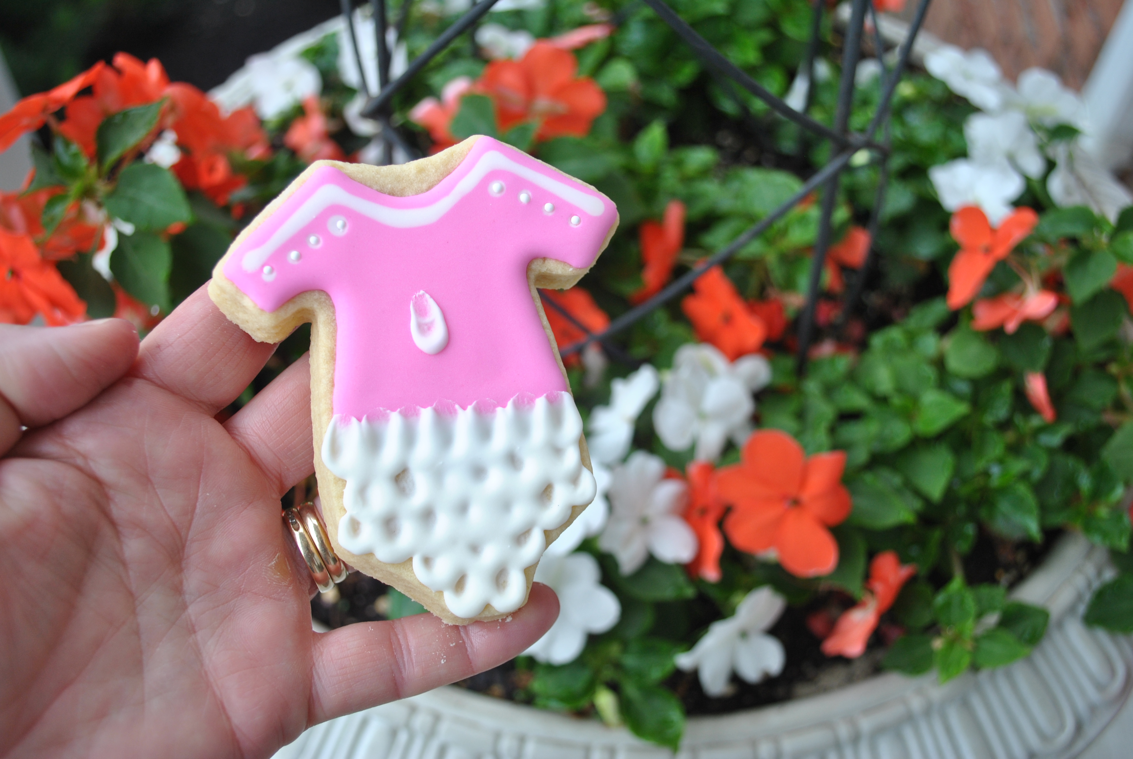 With lots of out-of-town guests attending the wedding, the groom’s mother decided to make up welcome gift bags. One of the treats inside the bag was this little four-pack of cookies. Since mom didn’t want any particular theme, I went with what I knew: the couple’s colors were light pink and grey; their initial’s were “M” and “R.” The bags used were pretzel bags found at Michael’s, Wal Mart, Hobby Lobby, even our local grocery store. They perfectly fit four 1.5 inch cookies!