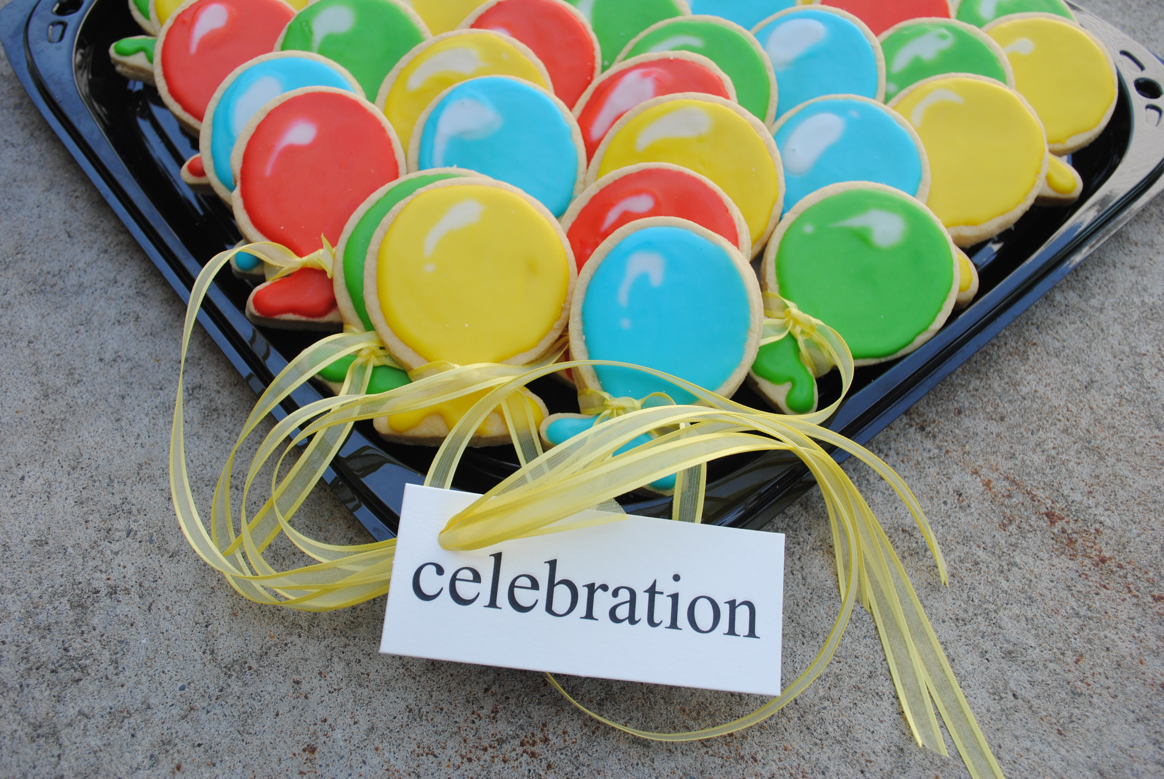 Party time for a retiring manager of auditors. Yep, I was stumped for a couple of days on what cookies to make for this celebration. They didn’t want undo emphasis on the retirement aspect and no teasing about the number of years ‘experience.’ The only specifications were to make the cookies bright and happy. The client liked the general party hat and balloon idea.