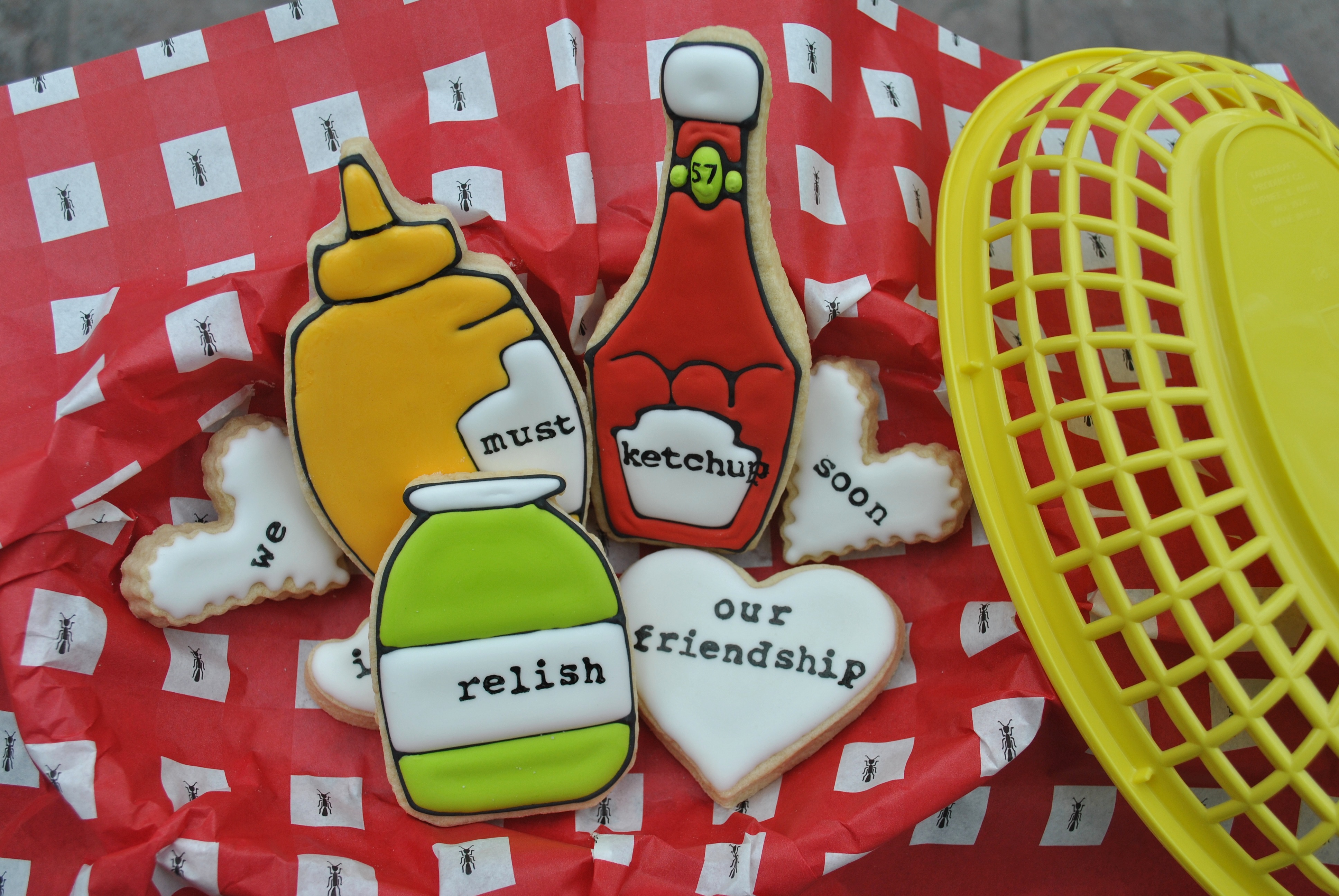 I have this friend- Kathy- who is smart, kind, funny, clever, incredibly resourceful, etc etc. You get the idea why any and everyone would want to hang with her! But in the summertime, it is extra lovely to be her buddy because she grows this incredible garden. No little plot with a handful of peppers and some tomato plants- rather it is a tilled and crop-rotated masterpiece. A HUGE undertaking from which we all benefit! so…I thought it apropos to make her birthday cookies that would help her ‘veg out!’ with something other than veggies. Surprise, surprise- the puns are back.
