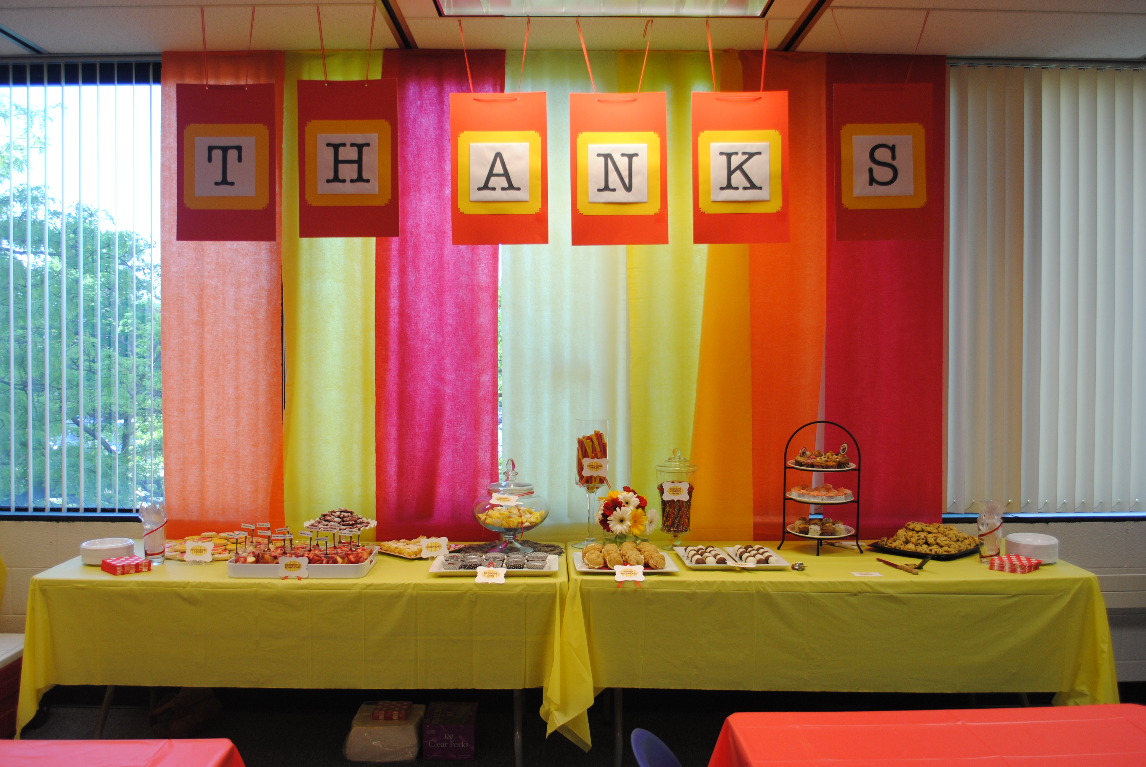 Here are some centerpieces used at other “appreciation” events: thanks bunches and thanks a ‘buzz’illion.